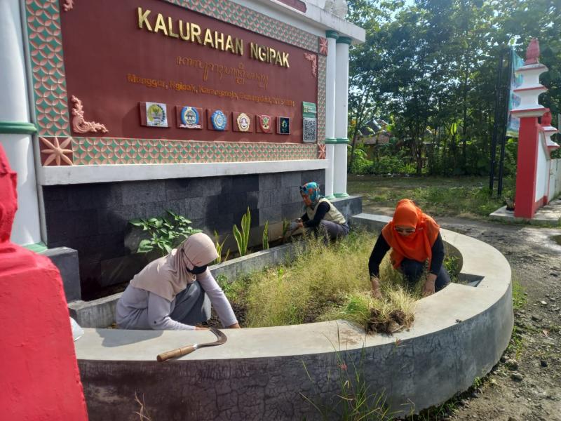 Kegiatan gotong royong ini dimulai tepat pada pukul 08.00 WIB dan dipusatkan di area sekitar Kantor Kalurahan Ngipak. Semua pamong kalurahan Ngipak terlibat aktif dalam kegiatan ini.